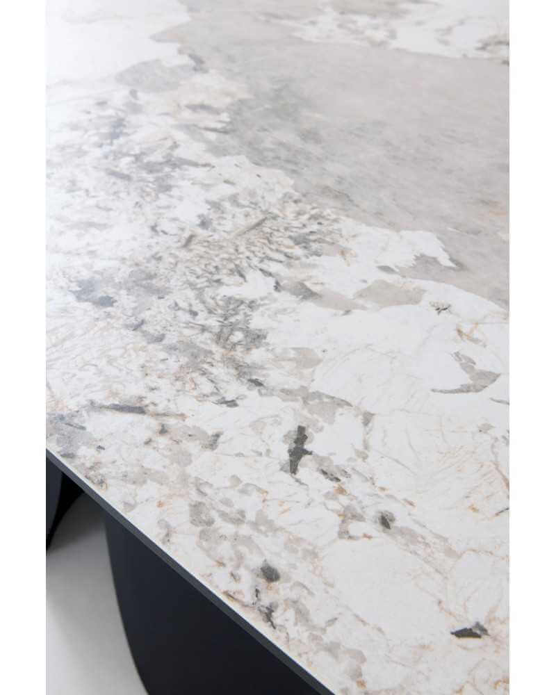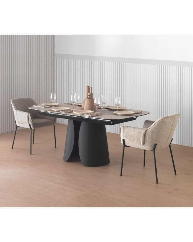 This black dining table with a Patagonia granite ceramic top is an ideal and highly decorative piece for a modern dining room. It extends from 180 to 240 cm and can accommodate 8 to 10 people.