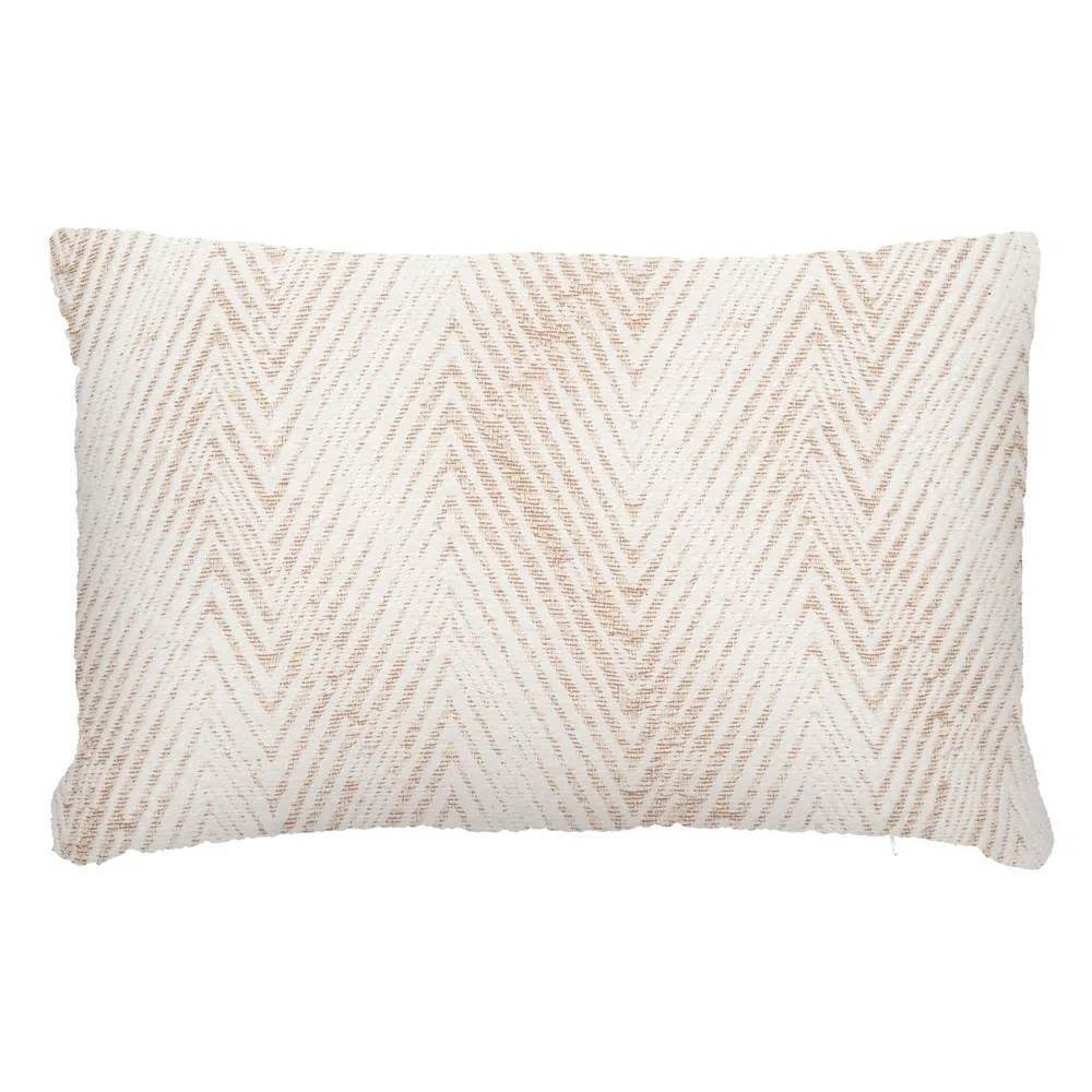 Add texture and warmth to your spaces with this geometric decorative pillow. Made from a soft cotton blend, its beige zigzag pattern on a white background offers a natural and timeless look. Ideal for boho, Scandinavian, or contemporary settings.