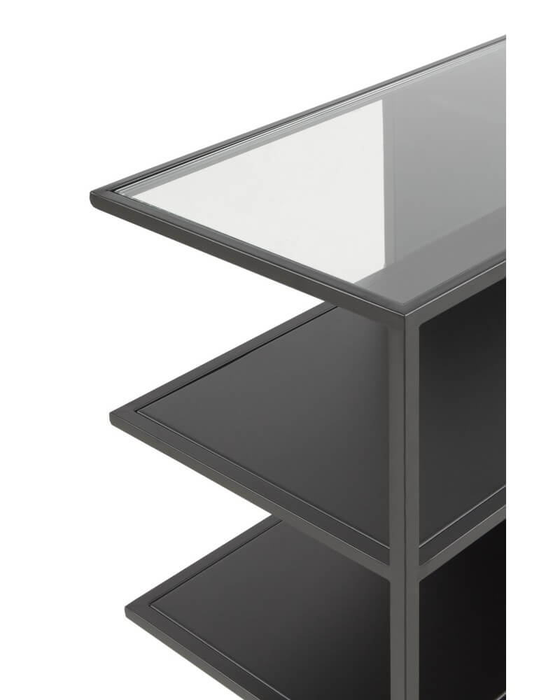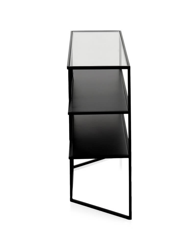 10941 Consola metálica negra con tapa de cristal.