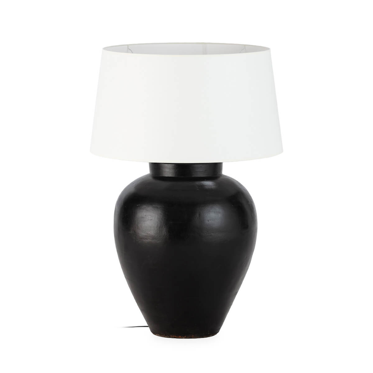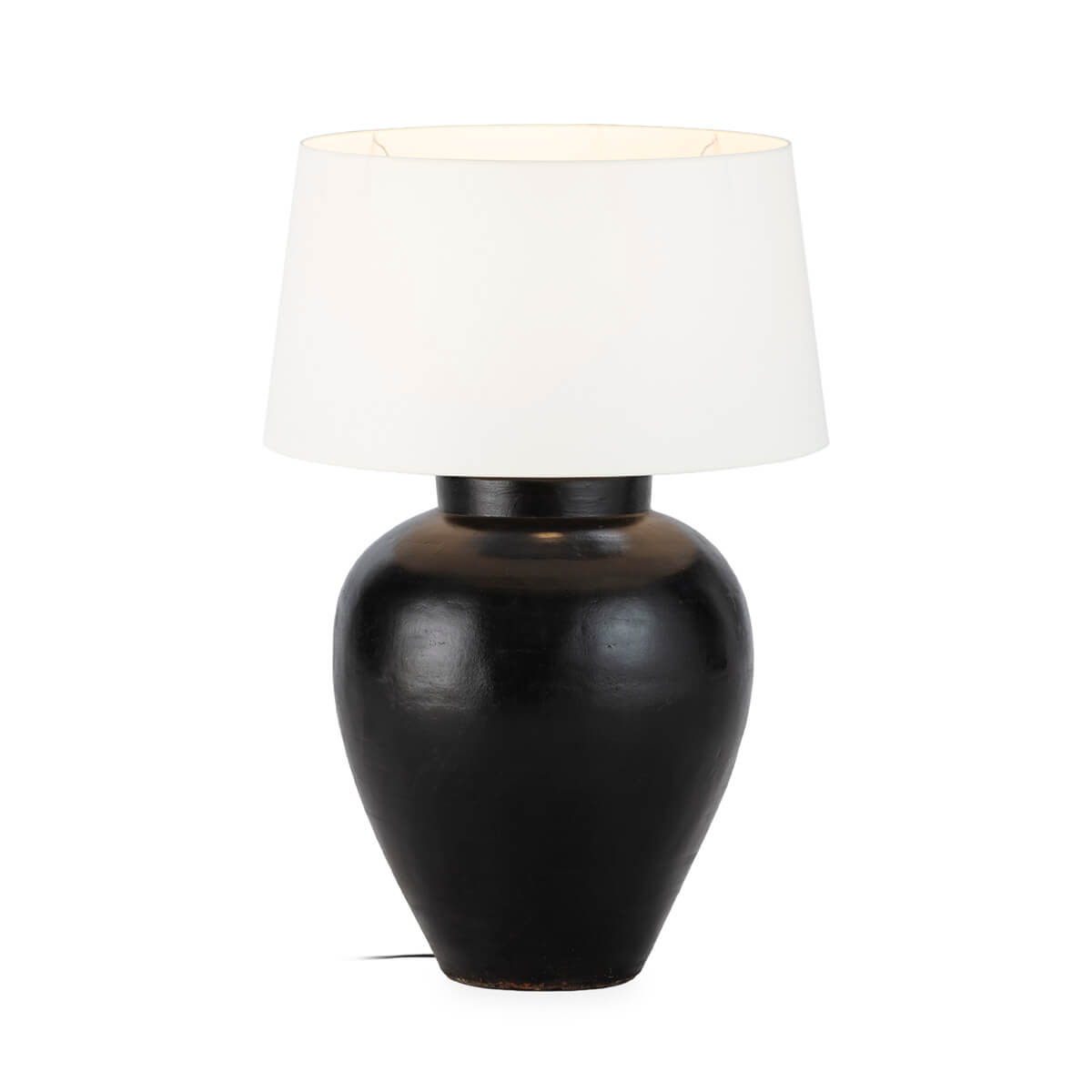 Lámpara sobremesa fabricada en terracota acabado negro, que aporta fuerza y calidez a una decoración contemporánea.