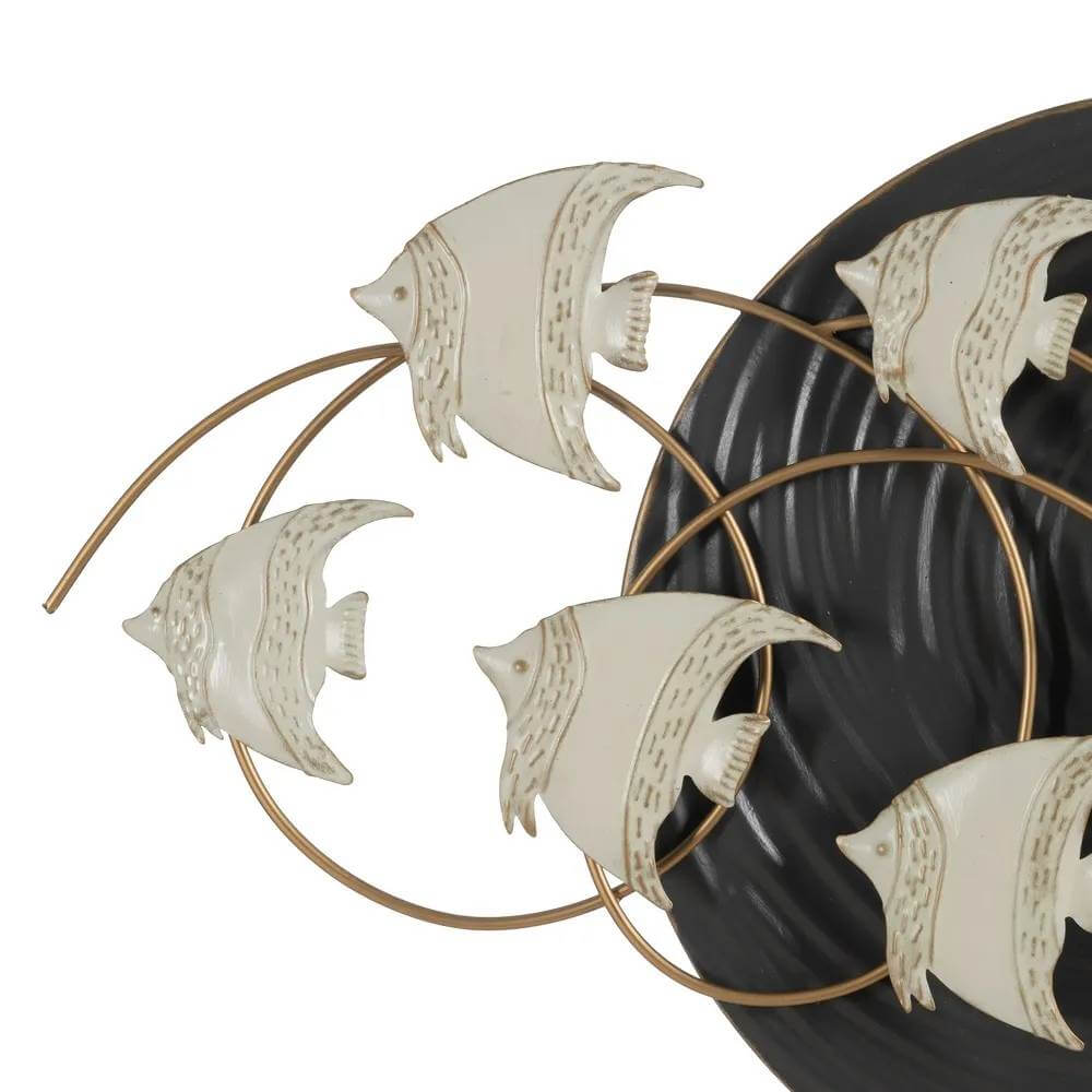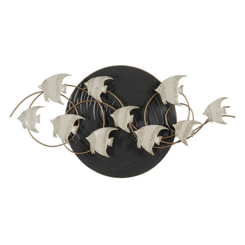 610374 Mural decorativo pared en metal negro y beig, con detalles en oro.